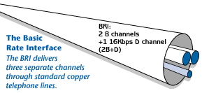The Basic Rate Interface represents ISDN in its simplest form - a dialed, high-speed digital connection capable of carrying virtually any type of voice, data, video, image, sound or other transmission.